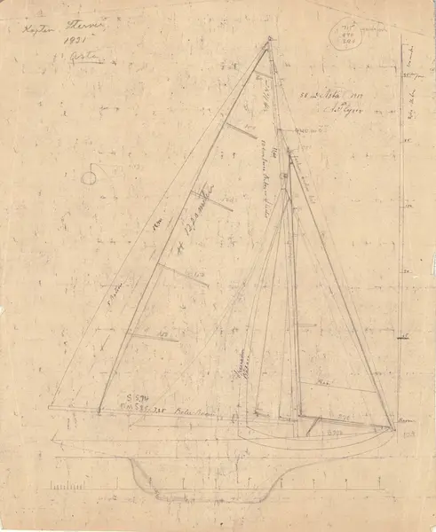 Ritningen har fungerat som underlag till en segelbeställning i Örtengrens segelmakeri.