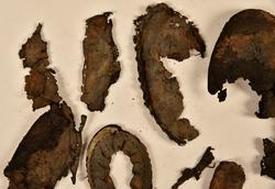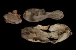 Delar och fragment av sko.