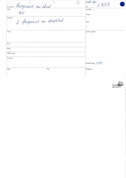 - Part of collection Vasamuseets föremål