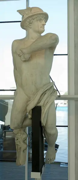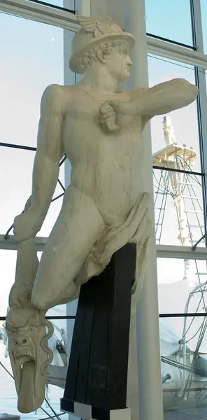 Figuren föreställer troligen Perseus, en hjälte i den grekiska mytologin. Perseus skickas att döda gorgonen Medusa. På vägen hem räddar han prinsessan Andromeda, odjuren som vaktar henne blir förstenade när han håller upp Medusas huvud. En tolkning av detta kan vara att Perseus (Gustav III) räddar Andromeda (Finland) från odjuret (Ryssland).
