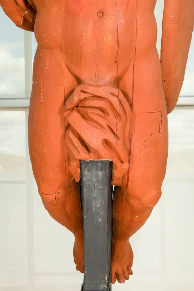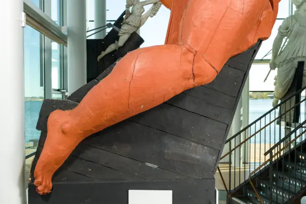Galjonsbilden hängde ursprungligen i Galjonslunden som inrättades på 1870-talet. Flyttades sedan inomhus 1953 när museet fick nya lokalen i skeppsgossekasernen.