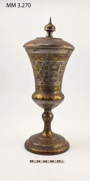 - Denna urna skänktes som en del av ett par till pansarskeppet Oscar II av änkedrottning Sofia 1909. Se MM 03269.