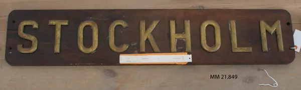 - Användning: Namnbrädan har suttit på jagaren Stockholm för att utvisa fartygets namn.