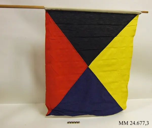 Användning: För fartsignalering. Fartflaggan visar beordrad fart. Flaggan flyttas i olika rörelser för att visa exempelvis full fart eller stopp. (Källa: "Signaltabeller för marinen STM 1977")