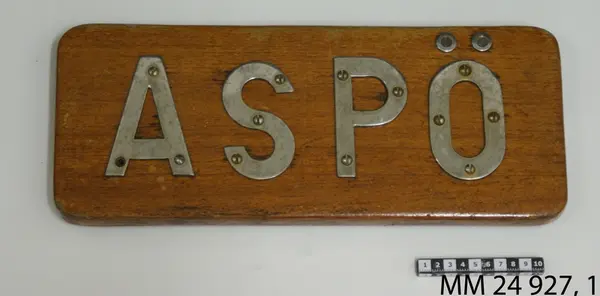 Användning: Har suttit som namnbräda på minsveparen Aspö.
