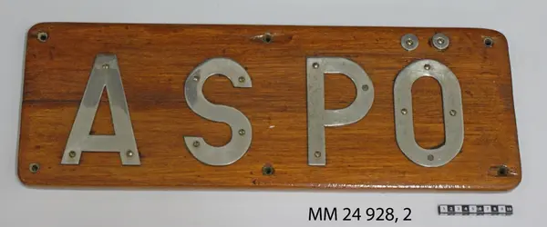 - Användning: Har suttit som namnbräda på minsveparen Aspö. Byggd på Karlskronavarvet, sjösatt 1962 och utrangerad 1989 (Källa: von Hofsten & Waernberg: Örlogsfartyg 2003).