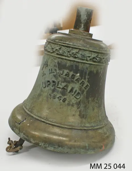 Användning: Skeppsklockan har suttit på jagaren Uppland och har använts för att ange antalet halvtimmar som passerat sedan senaste vaktavlösningen. Klockan används också för att ge signal då fartyget ankrat i dålig sikt.