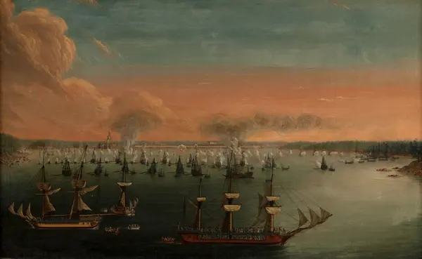 - Tavlorna Ö 3918-29, Ö 3931, Ö 3935, Ö 3938 inköpter på Jacob Häggs inrådan 1922 till de sjökrigshistoriska samlingarna från en ickenamngiven svensk sjöofficer för 6000:-, medel tagna från sjöförsvarets anslag. Dessa tavlor omnämns i handlingarna ha tillhört Gustav IV Adolf. Gustav IV Adolf skall ha tagit dessa med sig i sin landsflykt 1809 och ha variti i Sachsiska furstehusets ägo fram till 1918 då de via en konshandlare kom tillbaka till Sverige.