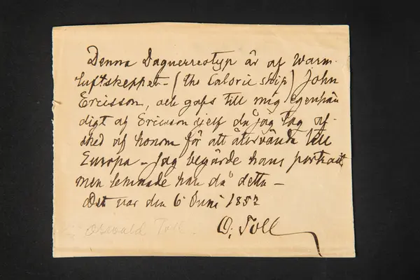 - Daguerrotypien med det 1851 byggda varmluftsskeppet JOHN ERICSSON överlämnades av uppfinnaren själv, John Ericsson, till E. O. Toll 1852-06-06 under Tolls studiebesök i Amerika för studier av fartygskonstruktioner.