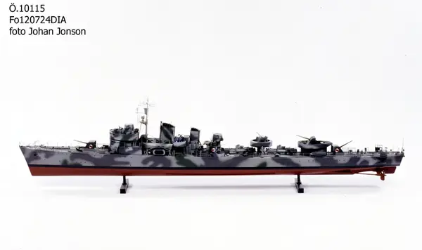 Jagaren Visby efter vilken denna modell är framställd, är byggd 1943 å AB Götaverken.