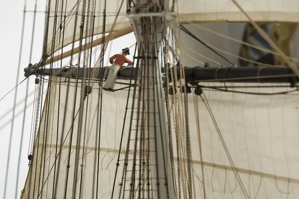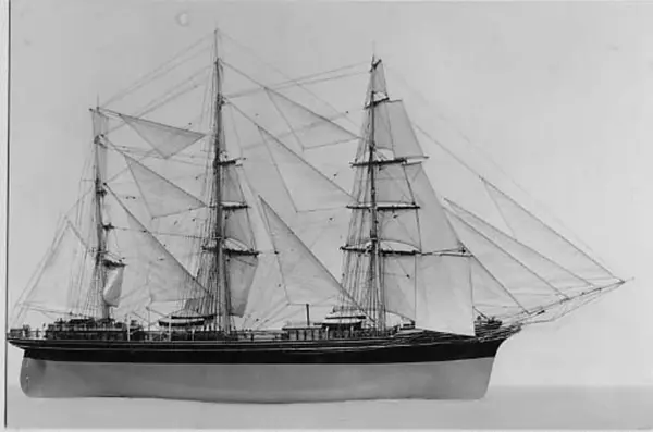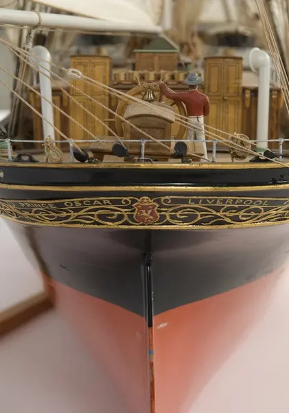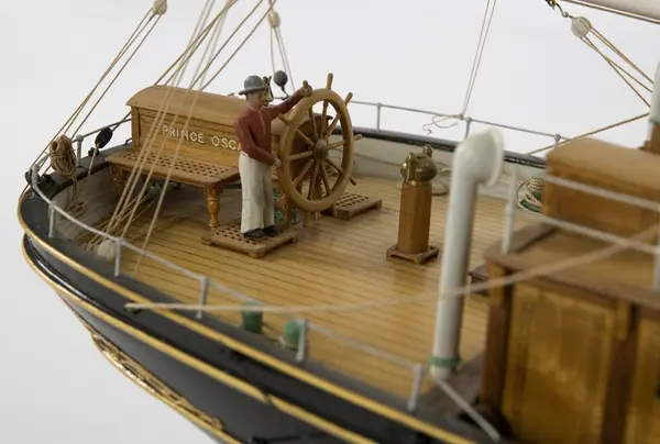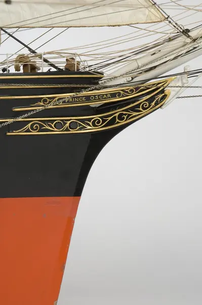 Text på äldre utställningsskylt, ej sparad: Modellen överlämnades efter stapelavlöpningen till Prins Oscar men efter hans död kom den i privat ägo. Inköptes av direktör H Granholm, Stockholm och skänktes av honom till förutvarande Sveriges Sjöfartsmuseum i Stockholm. Restaurerades på museets modellverkstad med ledning av originalritningarna 1931-32 på bekostnad av ing. O Botolfsen, Sthlm.