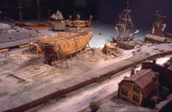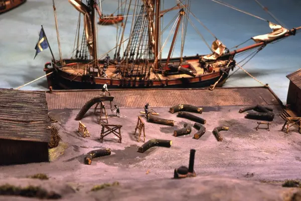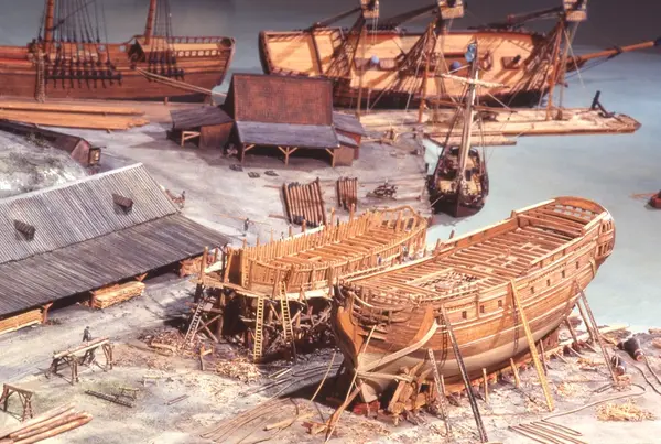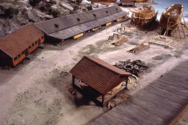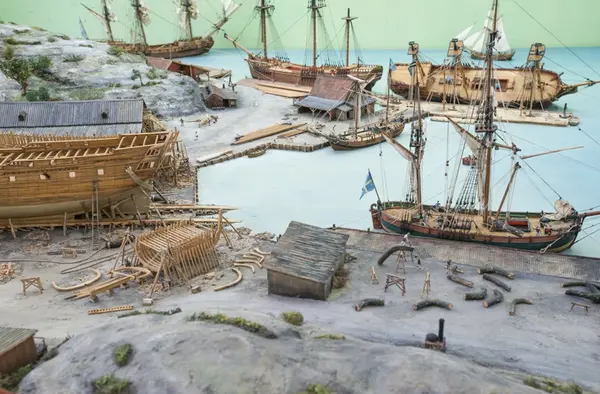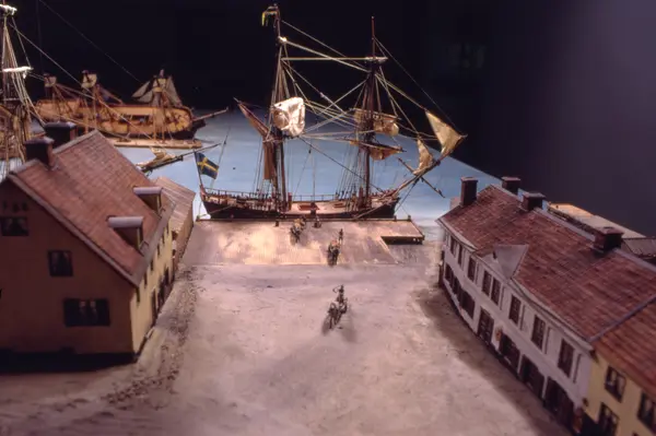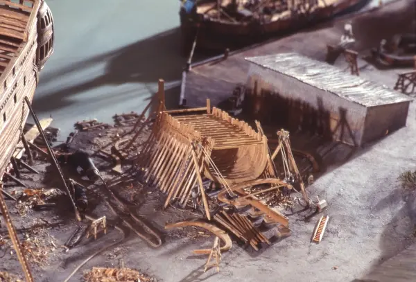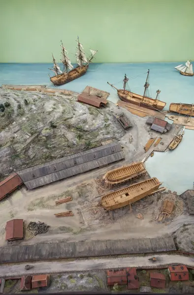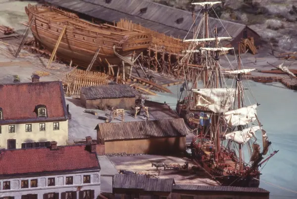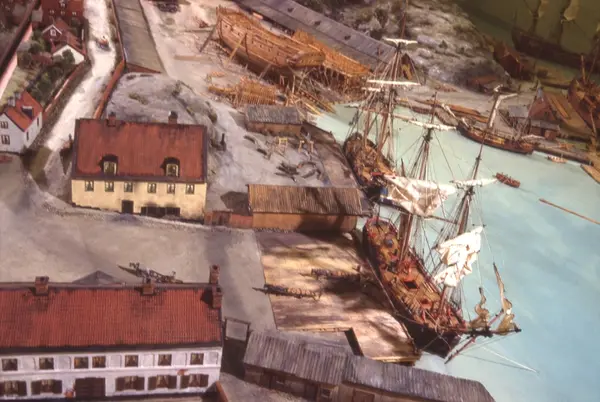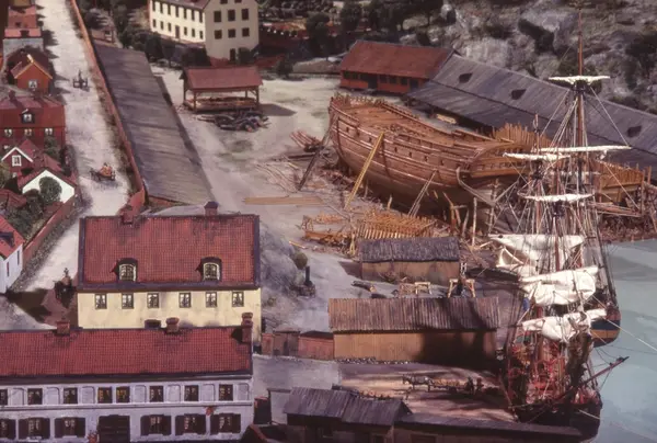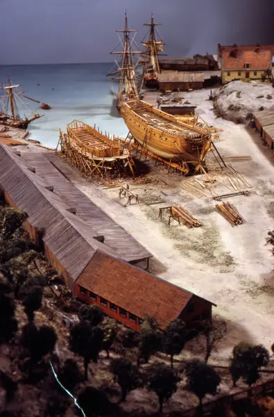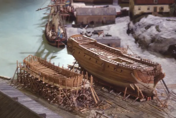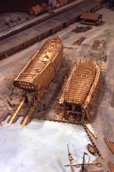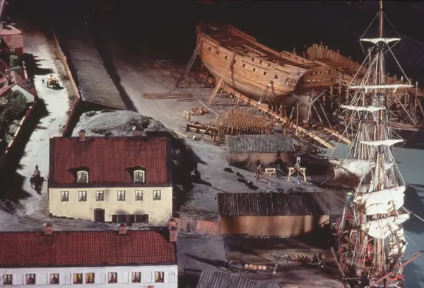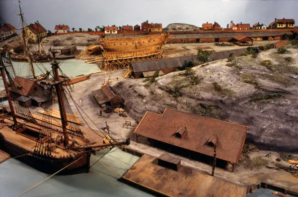 - Modellen visar Södra varvet så som det såg ut år 1781. Varvet etablerades vid Tegelviken 1687 av Stockholms stad. Under 1700-talet kallades det Stora varvet eller Stadsvarvet, längre fram i tiden Södra varvet. På modellen finns åtskilliga byggnader och fartyg, liksom ett sextiotal personer i full verksamhet på varvsplan. Det gula stenhuset med årtalet 1748 på gaveln finns kvar än idag på Folkungagatan 147. Varvsverksamheten bedrevs fram till 1930, då Stadsgårdshamnen utvidgades. Härifrån utgår idag Viking Lines finlandstrafik. Modellen är i skala 1:120 och byggdes inför öppnandet av Sjöhistoriska museet 1938.
