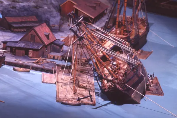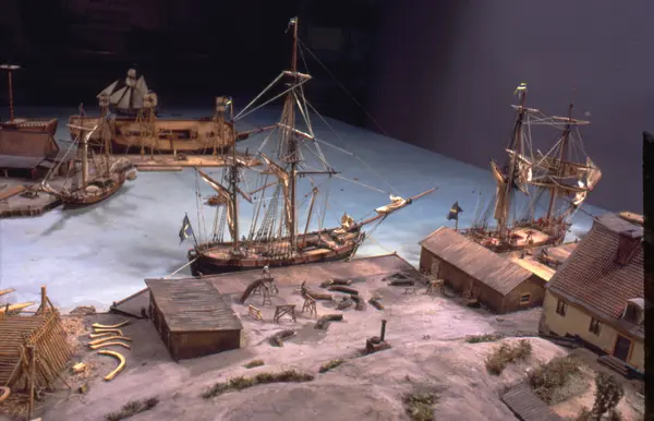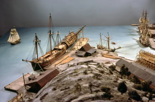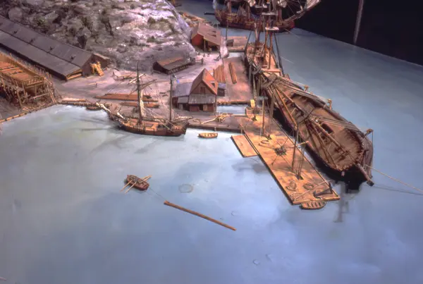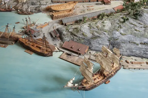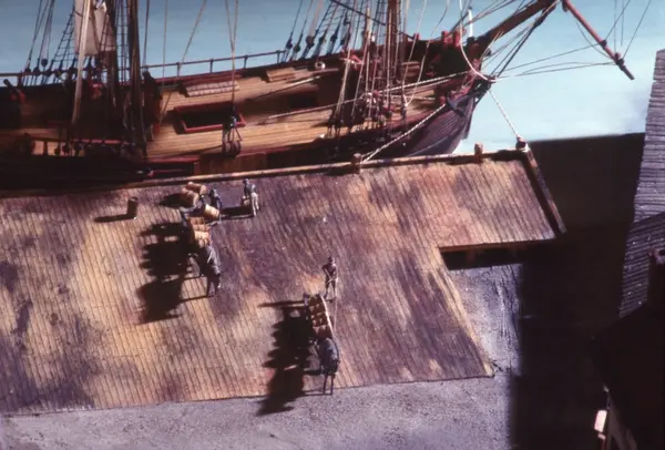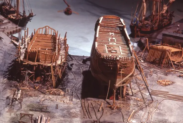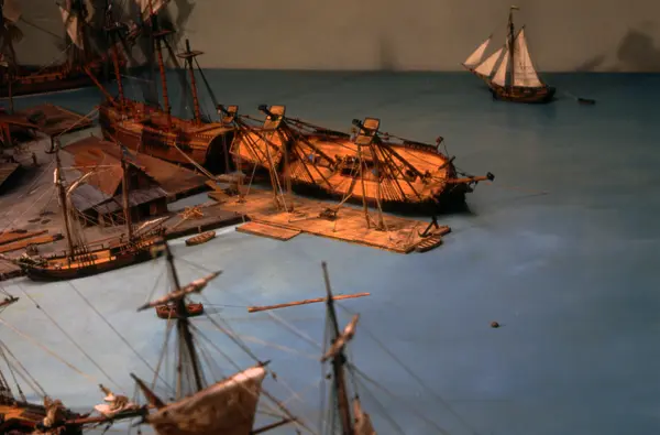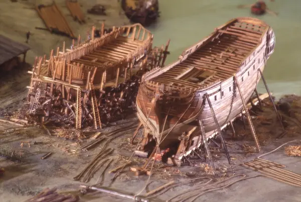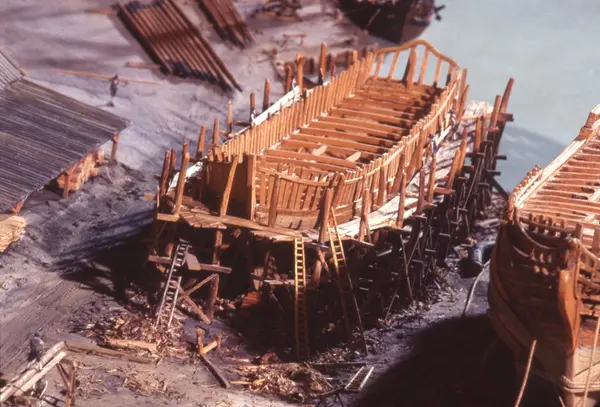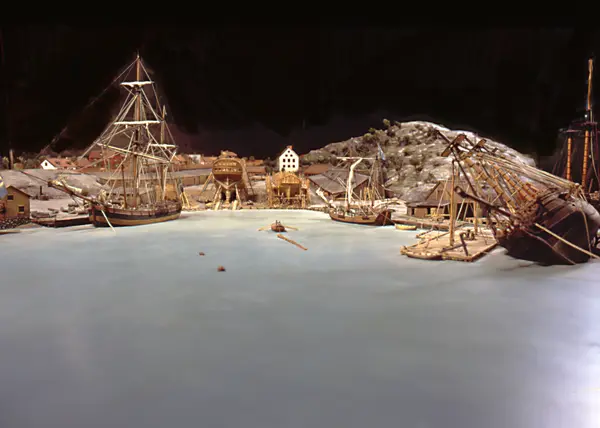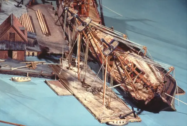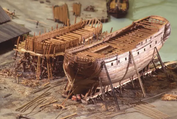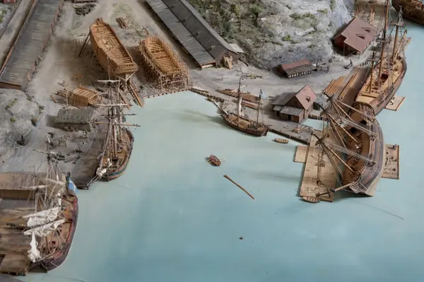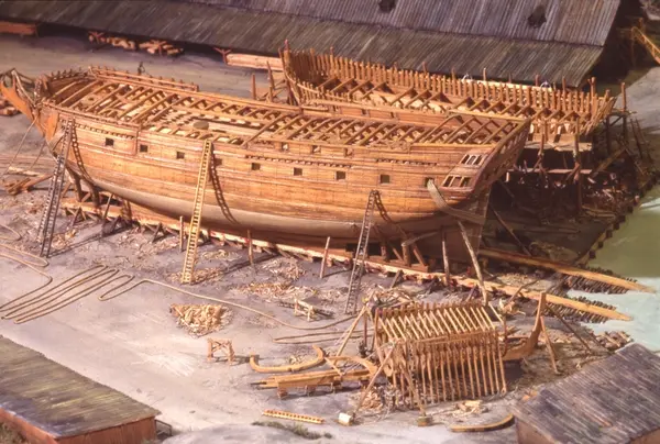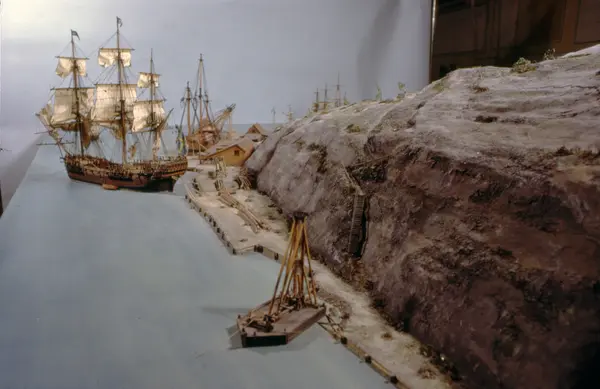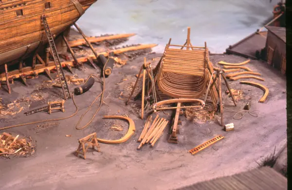 - Modellen visar Södra varvet så som det såg ut år 1781. Varvet etablerades vid Tegelviken 1687 av Stockholms stad. Under 1700-talet kallades det Stora varvet eller Stadsvarvet, längre fram i tiden Södra varvet. På modellen finns åtskilliga byggnader och fartyg, liksom ett sextiotal personer i full verksamhet på varvsplan. Det gula stenhuset med årtalet 1748 på gaveln finns kvar än idag på Folkungagatan 147. Varvsverksamheten bedrevs fram till 1930, då Stadsgårdshamnen utvidgades. Härifrån utgår idag Viking Lines finlandstrafik. Modellen är i skala 1:120 och byggdes inför öppnandet av Sjöhistoriska museet 1938.