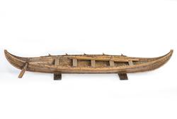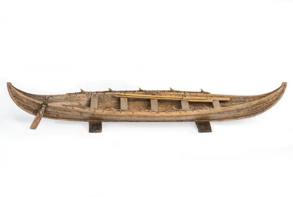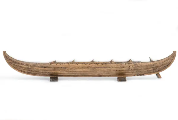 Rekonstruktion av gravbåt nr 2 från gravfältet vid Valsgärde I Uppland utgrävt 1928. Roddbåten, ca 9,1 m lång och 2 m bred, är daterad till omkring 900. Den snipformade grundgående båten roddes med fem par åror. De till ett 20-tal uppgående båtgravar vid Valsgärde hänför sig till de fem seklerna efter 600.