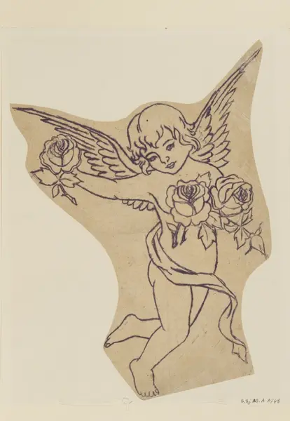 Del av stor samling tatueringsförlagor med okänd historia och okänt sammanhang. Många förlagor är troligen danska och från 1920- och 1930-talen.
