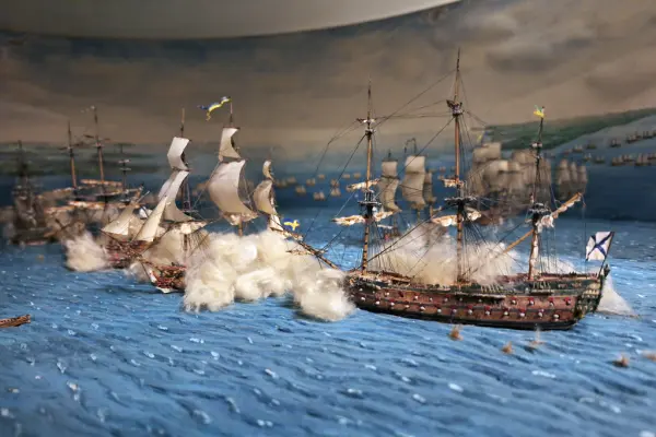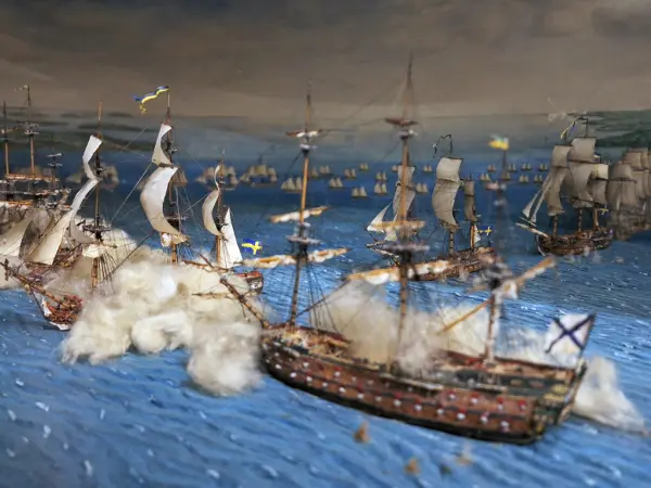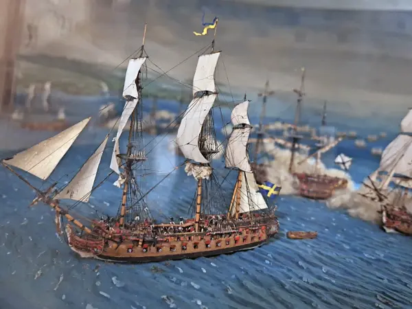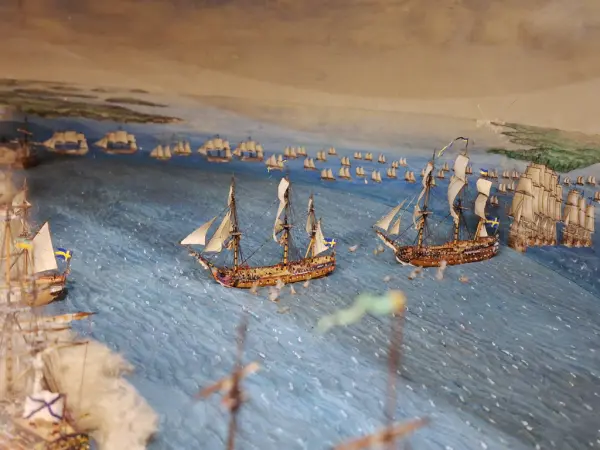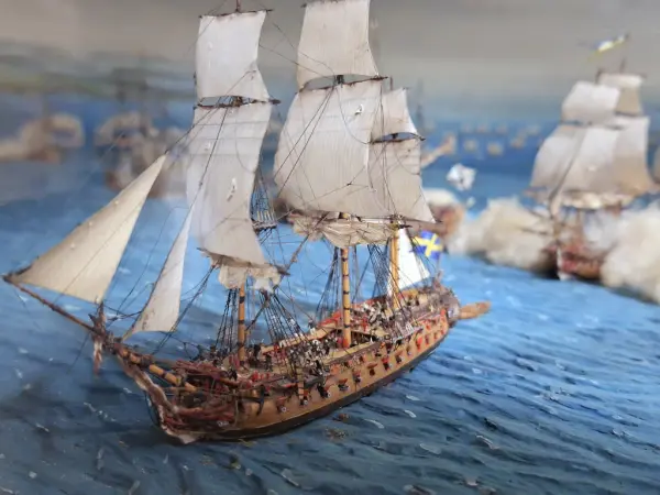 Detta diorama avser att illustrera utbrytningens inledningsfas. Det är komponerat och tillverkat av kapten Patrik de Laval. Fonden och sjön har utförts av hans bror överstelöjtnant Georg de Laval.