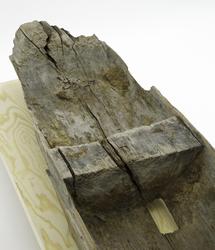 På båten en frakgodslapp med text; Från Kristineberg gård, Rosenfors station. Till Kalmar läns Fornminnesförening intendent M. Hofrén Kalmar.
