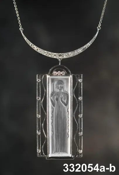 Lucia kröntes med luciakrona och fick ett smycke i gåva. Det här sortens smycke gavs till respektive Stockholms Lucior under åren 1948-1956 (enl. studier av luciaporträtt från tiden. Smycket var en personlig gåva. Detta smycke är från 1950 och Lucian hette Elisabeth Meyerhöffer. Hon hade vunnit Stockholms Dagblads Luciaomröstning och blev Stockholms Lucia 1950.