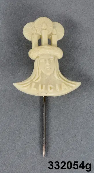 Lucia kröntes med luciakrona och fick ett smycke i gåva. Det här sortens smycke gavs till respektive Stockholms Lucior under åren 1948-1956 (enl. studier av luciaporträtt från tiden. Smycket var en personlig gåva. Detta smycke är från 1950 och Lucian hette Elisabeth Meyerhöffer. Hon hade vunnit Stockholms Dagblads Luciaomröstning och blev Stockholms Lucia 1950.