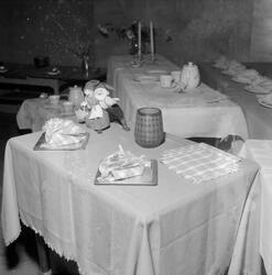 Arbeider-Avisa 01.12.1953 har brukt bilde 5 over bilde 16 med følgende bildetekst: "Arbeidsterapeut frøken Knudsen (t.v.) og messens formann, Kirsten Gjermstad, ved de gamles bord".