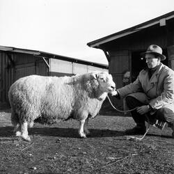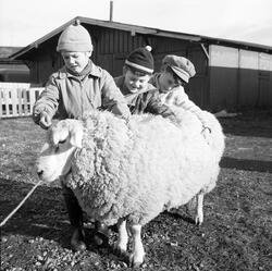 Innskrift på negativkonvolutt:"Sauesjå på Øya Adressa". Okt. -1956