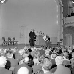 Innskrift på negativkonvolutt:"Åpningen av Landbruksuka (Adressa)". Mars -1957
