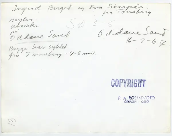 Fotografering: July 16, 1967 (Påskrift på baksiden av papirkopien)