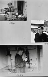 - Fotomontasje med tre bilder av en mann. Han er fotografertunder arbeid med et mikroskop under arbeid med, fotoutstyr og utendørs i politiets feltuniform. Mannen er trolig en ansatt ved Kripos.