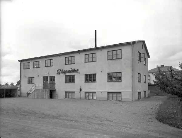 Bildtext: Exteriör fabriken Stoppmöbler 12/7 1954.