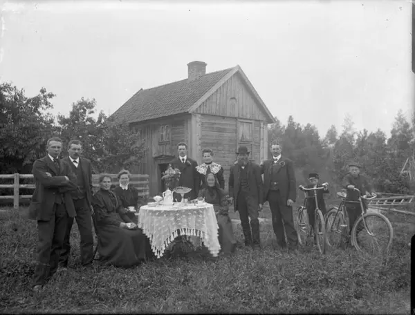 - Någon av männen är Carl August Ljunggren från Smedjegatan 26 i Jönköping, son till det äldre paret som är f d soldaten Johan August Ljunggren och hans hustru Anna Karin Blixt. Övriga sannolikt barn och barnbarn. Möjligen foto i samband med de äldres 45-åriga bröllopsdag.