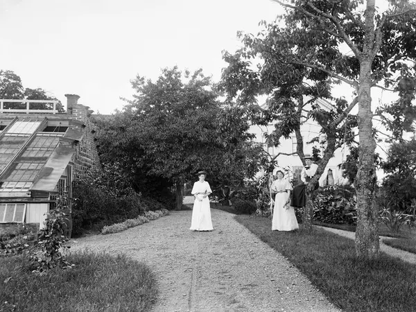 Fotografi av linköpingsfotografen Didrik von Essens hand där upplysande information dessvärre saknas. På goda grunder kan motivet placeras till trädgårdssidan av Borggårds bruksher...