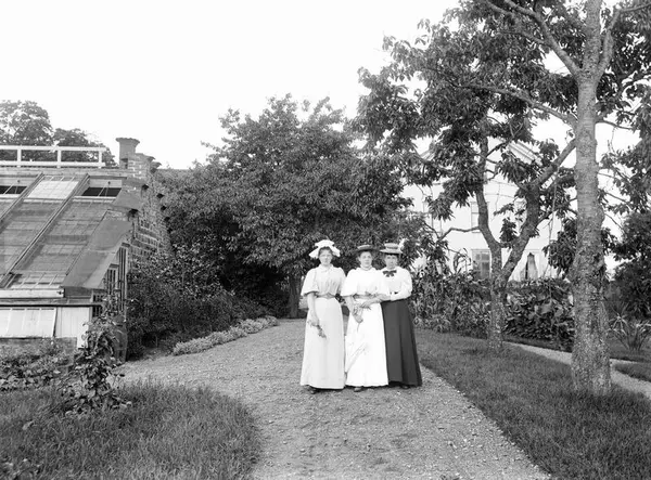 Subject Fotografi ur linköpingsfotografen Didrik von Essens samling där upplysande information dessvärre saknas. På goda grunder kan motivet placeras till trädgårdssidan av Borggårds bruksherrgård, där huvudbyggnaden ses skymta skymta i bakgrunden. Vid tiden för bildens tillkomst omkring förra sekelskiftet, ägdes bruket av makarna Adolf och Mimmi Trägårdh.