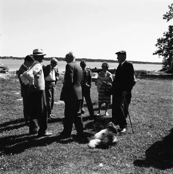 på Äpplarö. Mannen bredvid med käpp är Erik Jansson dåvarande kommunalråds ordförande i Ljusterö Kommun.(egen kommun