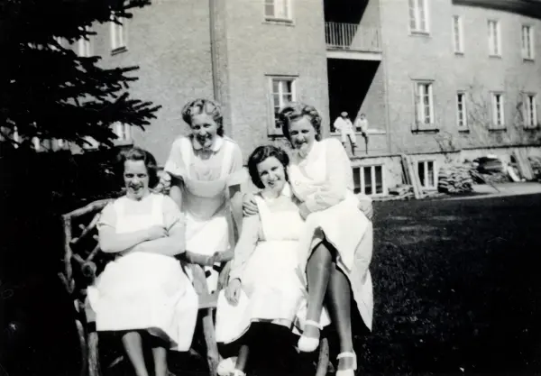 Det var skillnad på vårdbiträden (barhuvade) och sjuksköterskor som hade armbindel och mössa med hakband.