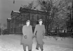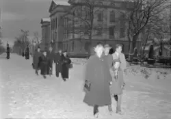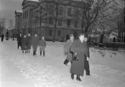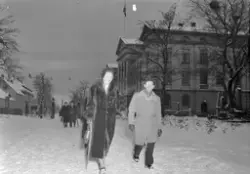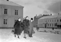 Innskrift på negativkonvolutt: "Folk på kirkevei 1. juledag, foto f. Adressa". - 1954.