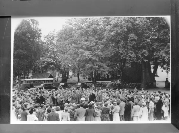 Ransbergs kyrka när kungen va på besök o prosten Gustafsson hälsar välkommen . Detta kort hade vi hemma i mitt föräldrahem."