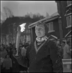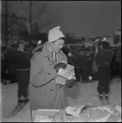 Innskrift på negativkonvolutt: "Trondheimsrennet på Sverresborg (adr.) forskj. skiløpere nr. og navn vedlagt." 17-19.01.1958
