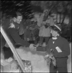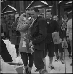 Adressa trykket bilde 12 og skriver: "Verdens lengste premieutdeling fant sted på Sverresborg etter rennet i går... At løperne holdt ut så lenge forestillingen varte, berodde bare på at de valgfrie premier hadde så høy verdi. Og at såvidt mange av publikum holdt ut så lange , må vi gi speakeren, Hamre, en del av æren for. Han holdt alle i ånde... Det var tilløp til stor stemning når de beste fikk sine premier og ble intervjuet, men ærlig talt kunne det kanskje vært satt litt mere fart på denne del av arrangementet. Nå er jo våre skiløpere veldig raske i løypa, men de ferreste av dem er særlig raske i replikken , og når alle skal bort til mikrofonen, kan det bli kvelden før man blir ferdig...".