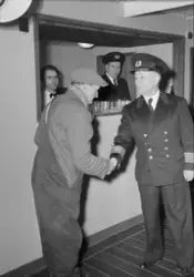 Innskrift på negativkonvolutt: "M/S "Meteor", ekst. + intr + kapteinen, Thorfinn Kristiansson" . - 23.01.1955.