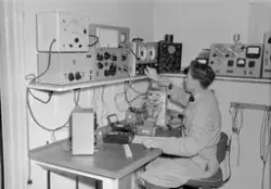 Innskrift på negativkonvolutt: "Div. fra Edda Radiofabrik. fotogr. for Adressa". - Febr.1955.