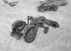 Autoindustri, traktor m/sneskuffe og plog, reklame