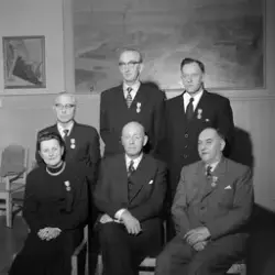 Innskrift på negativkonvolutt: "E.C.Dahl`s bryggeri foto. div. medaljemenn." 28.02.1956