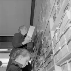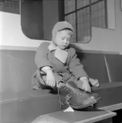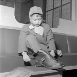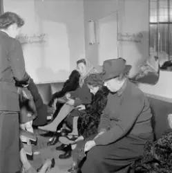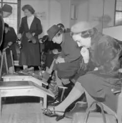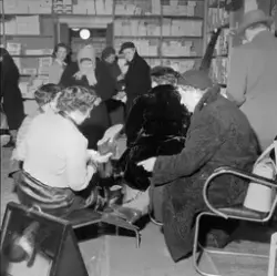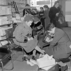 Innskrift på negativkonvolutt: "Billigsalg på Sko, foto f. avisene". - febr. 1955.