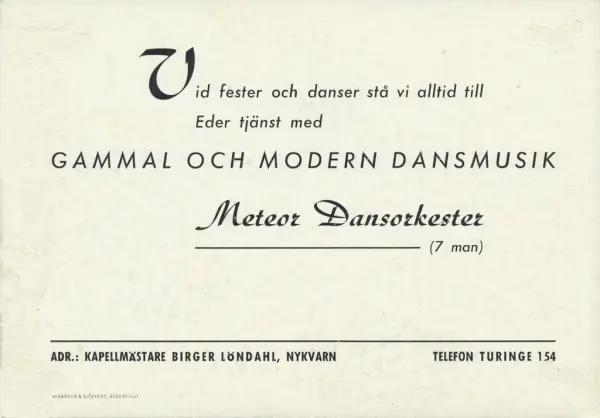 Musik i Nykvarn, gruppen Meteor var ett lokalt dansband som spelade i folkparken i Nykvarn och kringliggande orter.