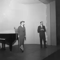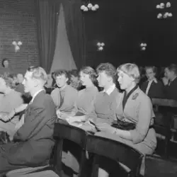 Innskrift på negativkonvolutt: "Tekstilkurs i Handelsst. foto div. + portr. Adressa og biledBladet "Nå". - 29.03.1955.