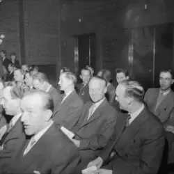 Adresseavisen 29.03.1955 har laget en montasje. Øverste rekke bilde 6 til venstre for bilde 7. Her er ikke kvinnen t.v. med. Under disse to fra venstre bilde 13, 14, 12, 11 og 8 (kvinne 1.-3 fra høyre). Montasjen har følgende bildetekst: "En rekke ekspeditører og -triser fra byens forretninger i tekstilbransjen var samlet til et kurs i varekunnskap i Handelsstandens store sal i går, og fotografen har laget noen utsnitt fra forsamlingen. Øverst fra venstre ser vi Anne Pevik, fru Schjetne, Odd Furberg og Kjell Johansen fra firmaet H. Klein, videre Håkon Vegmo, Ingeborg Løvseth, Guri Storrø og Mary Eriksen fra Ole Dahl. Under er kursets fire "lærere". Først 3 unge tekstilingeniører fra Trondheim, Knut Bach, Nicolai Klinge og Einar Berg, samt konsulent A. Zimmer jr. fra Tekstilfabrikantenes Opplysningskontor. Til høyre tre damer fra A. Dahl & Co., Alma Selnæs, Karin Svendsen og Lisbeth Ranum".