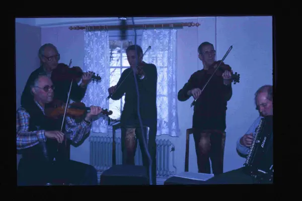Efter Rune tog Börje Olsson över ledarskapet och med sitt musikaliska kunnande ställde han motsvarande krav på oss musikanter. Under Börjes ledning spelade gruppen bl a vid julmarknaden i Taxinge slott. Börje själv spelade fiol och gruppen liknade då mer en hel orkester med klarinett, dragspel, cittra, gitarr och inte mindre än sex fioler. Tore Kvist, Gösta Lemon, Ava Tiitus och Rebecka Olofsson. Det är klart att det påverkade valet av låtar. Jag minns att vi kände på låtar som Liv-Anders polska, Gammal Dalavals m fl dessutom i flera stämmor säger Åke Andersson som också var med i gruppen då.