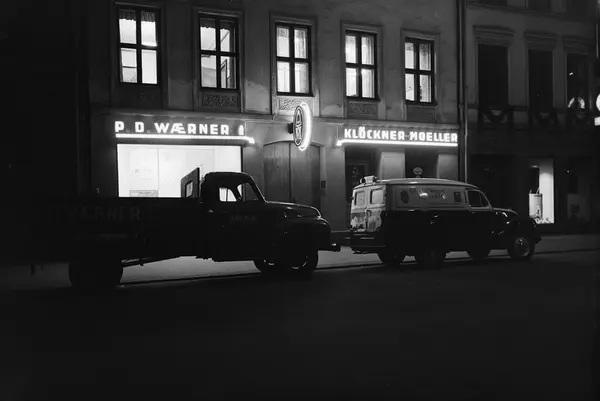 - Bilene er en Austin varebil ca. 1949-53-modell og en Opel Blitz lastebil 1952-54.