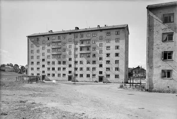 - Bildet er tatt mot sør. Til høyre hjørnet av blokka med adresse Birch-Reichenwalds gate 30-34, og "høyblokka" Birch-Reichenwalds gate 24-28.