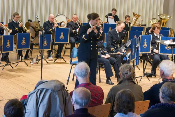 I mitten på främre raden känner jag igen Carola Olander och till höger om henne Roland Larsson. I orkester från vänster har vi: Per Fastrup, trumpet (vikarie), Lars Hedlund, trombon med sordin, Jan Dohlin, trombon, jag Katja Wisén, flöjtsolo, 2 doldisar, Sabine Jönsson, piccola, Andreas Eklöf, slagverk (vikarie) vänder blad, Marcus Bauer, oboe, Elias Gustafsson, tuba, Anders Hårstahaugen, eufonium, Carina Johansson, essklarinett och Jörgen Ådvall, tuba.